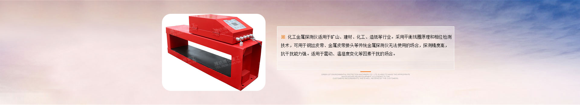 化工金屬探測儀適用于礦山、建材、化工、造紙等行業。采用平衡線圈原理和相位檢測技術,可用于鋼絲皮帶、金屬皮帶接頭等傳統金屬探測儀無法使用的場合,探測精度高,抗干擾能力強。適用于震動、溫濕度變化等因素干擾的場合。